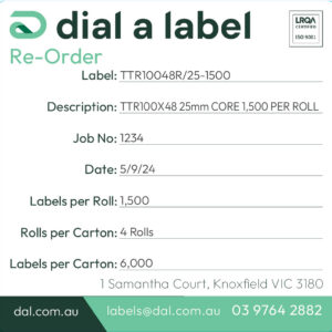 Thermal transfer labels, measuring 100mm x 48mm, are the durable choice for businesses needing high-quality, long-lasting labels. Designed for desktop printers with a 25mm core, each roll contains 1,500 labels, with 4 rolls per carton for a total of 6,000 labels.